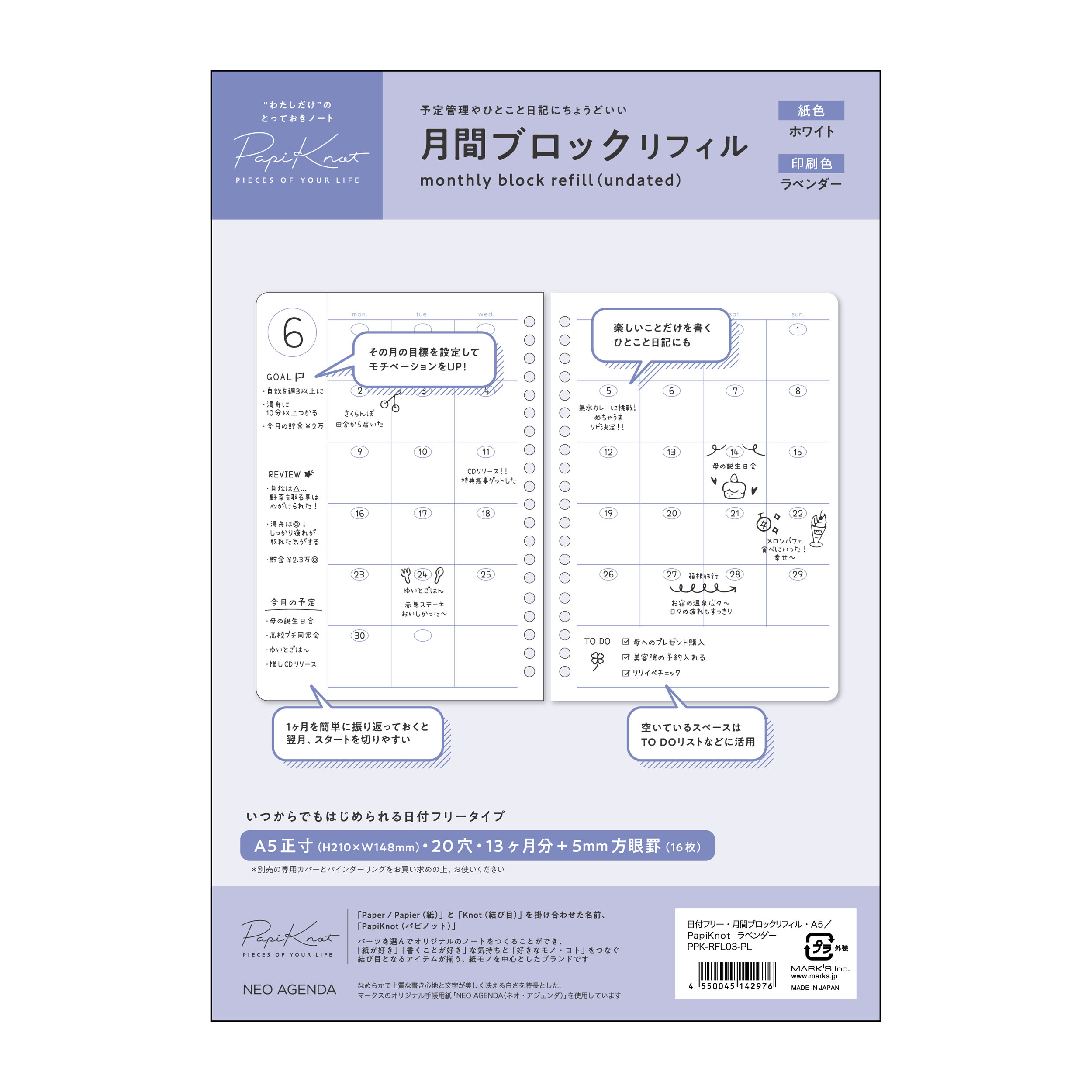 日付フリー・月間ブロックリフィル・A5/PapiKnot